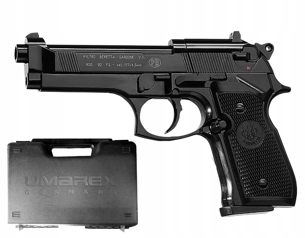 Пневматичний пістолет Beretta 92FS - дуже точна копія однієї з найпопулярніших видів вогнепальної зброї, яка використовується поліцією в усьому світі, включаючи армію США та італійську армію. Він характеризується дуже елегантною обробкою та високою точністю рами та компонентів. Вона повністю виготовлена з металу.