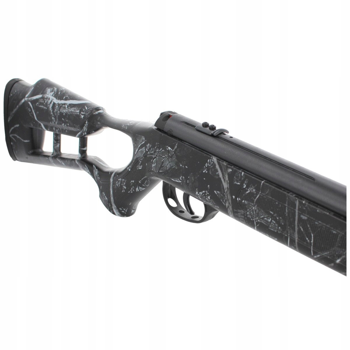 Стовбур - точний, нарізна сталь, довжина 16,5" (420 мм). Якість ствола має величезний вплив на точність, особливо під час стрільби на великі дистанції, це один із найважливіших елементів будь-якої зброї. Конструктори Hatsan подбали про підвищення точності рушниці, закінчивши ствол великим полімерним хомутомдула. перерва полегшує намотування пневматичної зброї, що додатково покращує баланс пневматичної зброї