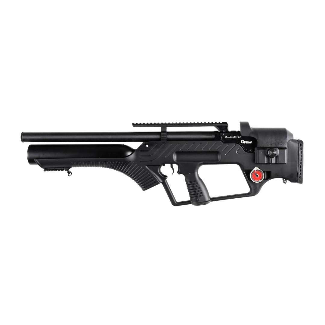У карабіні Optima by Hatsan BullMasterвикористано футуристичний приклад із полімеру, стійкого до механічних пошкоджень полімеру та погодних умов. Завдяки конструкції без прикладу пневматична гвинтівка буллап коротша та компактніша, зберігаючи при цьому довгий ствол та оптимальну лінію прицілювання. Ергономічна цівка має окрему пістолетну рукоятку, симетричний приклад з отвором для великого пальця та два щілини для зберігання запасних магазинів. Пістолетна рукоятка і передня частина рукоятки мають протиковзкі канавки, які допомагають зберігати повний контроль над рушницею. Hatsan BullMaster має дві планкиPicatinnyдля кріплення оптики та сошки, а також ручки для кріплення збройового ременя. Приклад має вентильований гумовий затильник, що забезпечує зручну опору гвинтівки, і регульовану щоку, завдяки якій ми можемо вдосконалити нашу оптику.