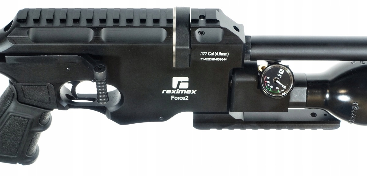 Reximex Force2, сучасна пневматична зброя PCP у практичному тактичному прикладі з пістолетною рукояткою та повністю регульованим прикладом. Завдяки телескопічному прикладу, регульованому затильнику і щічці ви можете повністю налаштувати рушницю відповідно до своїх уподобань. Force2 оснащений важелем заряджання Side Lever, подвійною рейкою для оптики 11 і 22 мм і курком з регульованою жорсткістю.