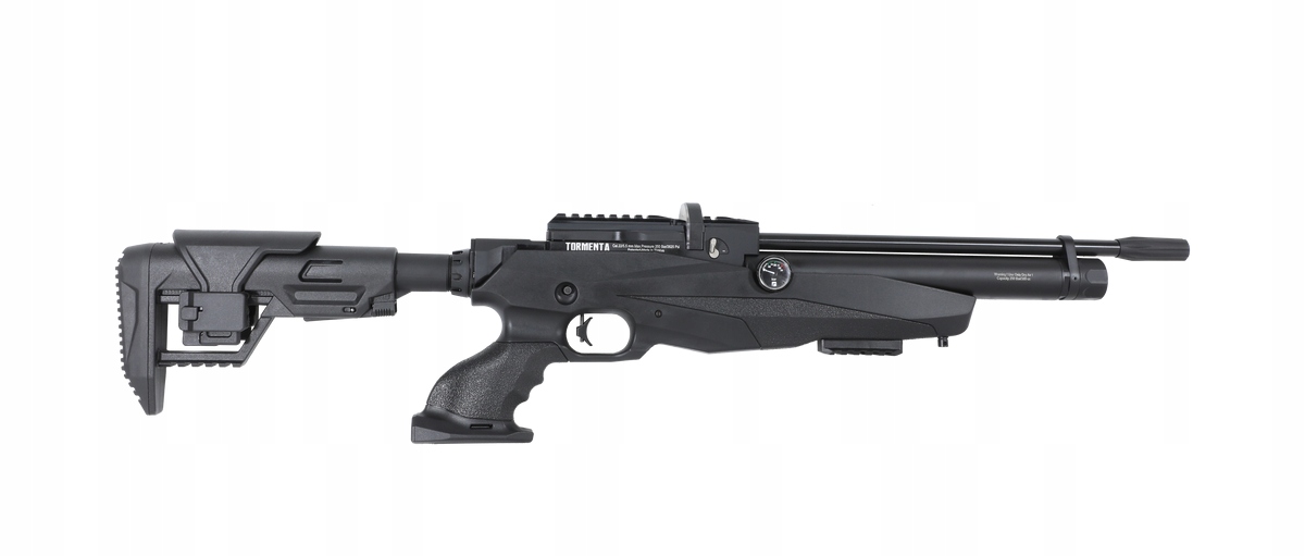 Reximex Tormenta Lite, сучасна пневматична гвинтівка PCP у компактному, тактичному прикладі з пістолетною рукояткою з міцного полімеру. Це нова версія популярної серії пневматичних гвинтівок Tormenta, доступна за ще більш доступною ціною, з тактичним телескопічним прикладом в системі AR з регульованою подушечкою. Гвинтівка оснащена важелем зведення Side Lever, легким алюмінієвим патроном і нарізним стволом. Доступні в калібрах: .177 (4,5 мм), .22 (5,5 мм), .25 (6,35 мм).