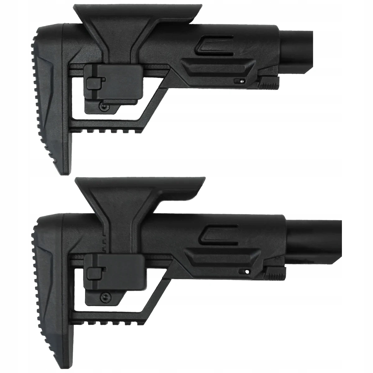 Утримання - компактне, тактичне зі зручною пістолетною рукояткою і телескопічним прикладом в системі AR з регульованою накладкою. Завершується гумовою ніжкою, яка поглинає віддачу. Оснащений кільцями для кріплення ременя для перенесення та відділенням для запасного магазину. Канавки та ергономічні канавки гарантують міцне захоплення пневматичної зброї. Рукав'я та приклад виготовлені з міцного полімеру.