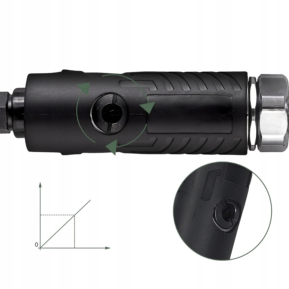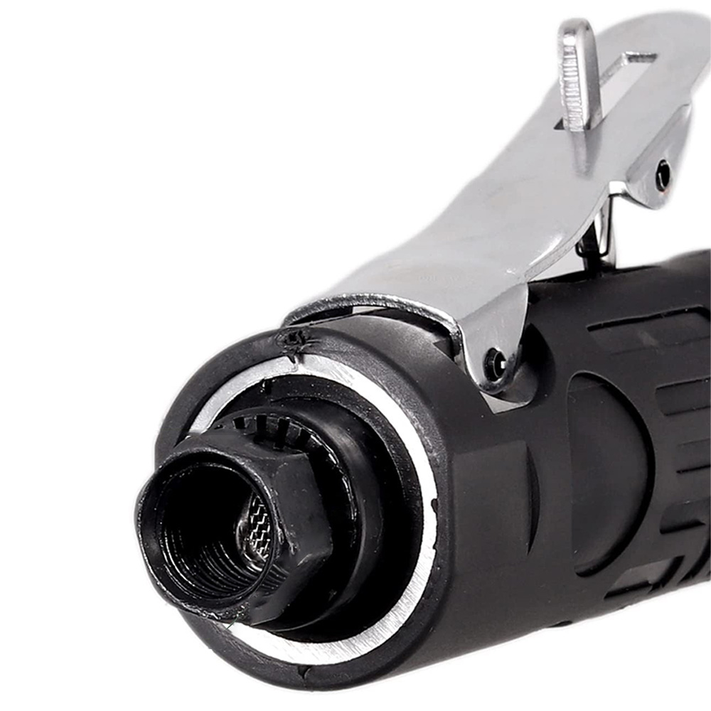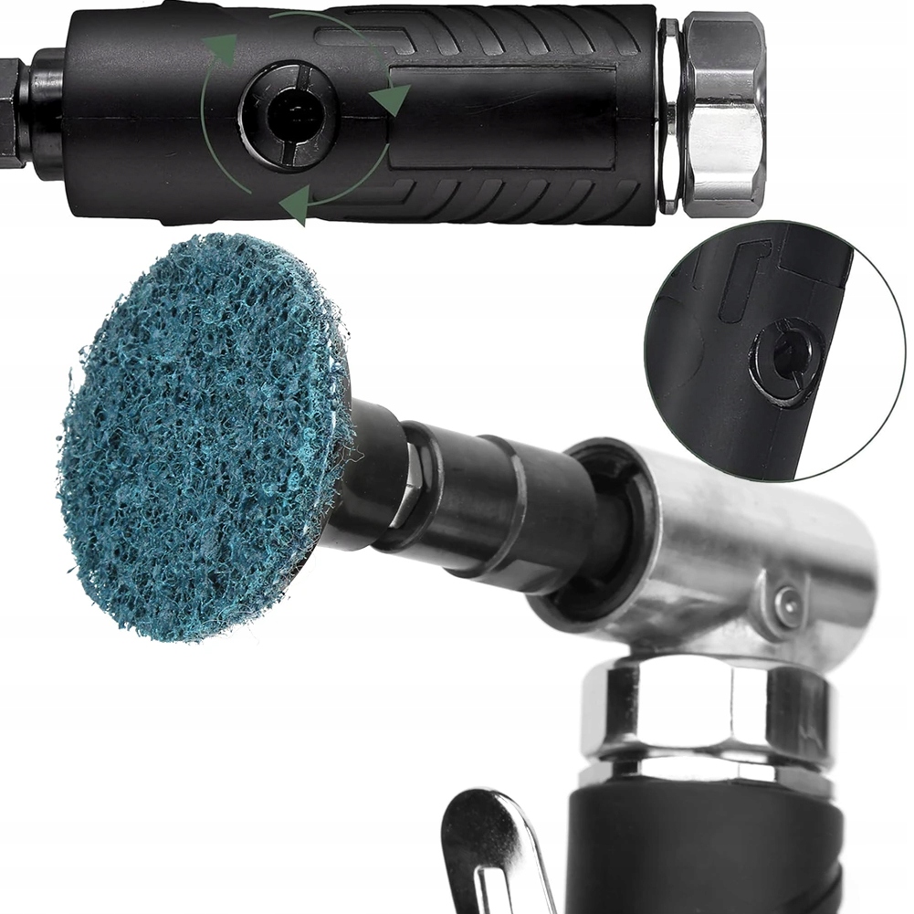 Пневматична кутова шліфувальна машина виготовлена з металу. Компактний дизайн, легка вага, низький рівень вібрації, тривалий термін служби та низький рівень шуму. Легко зберігати і переносити, можна використовувати тривалий час. Ідеально підходить для шліфування, видалення накипу, полірування та гравіювання невеликих деталей або вузьких поверхонь.