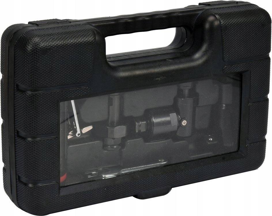 В набір входить корпус приводу та насадки у вигляді пневматичної тріскачки, прямої шліфувальної та кутової шліфувальної машинки, роз’єм для підключення інструменту до пневматичної системи та гайкові ключі. для кріплення аксесуарів у тримачі шліфувальної машини .