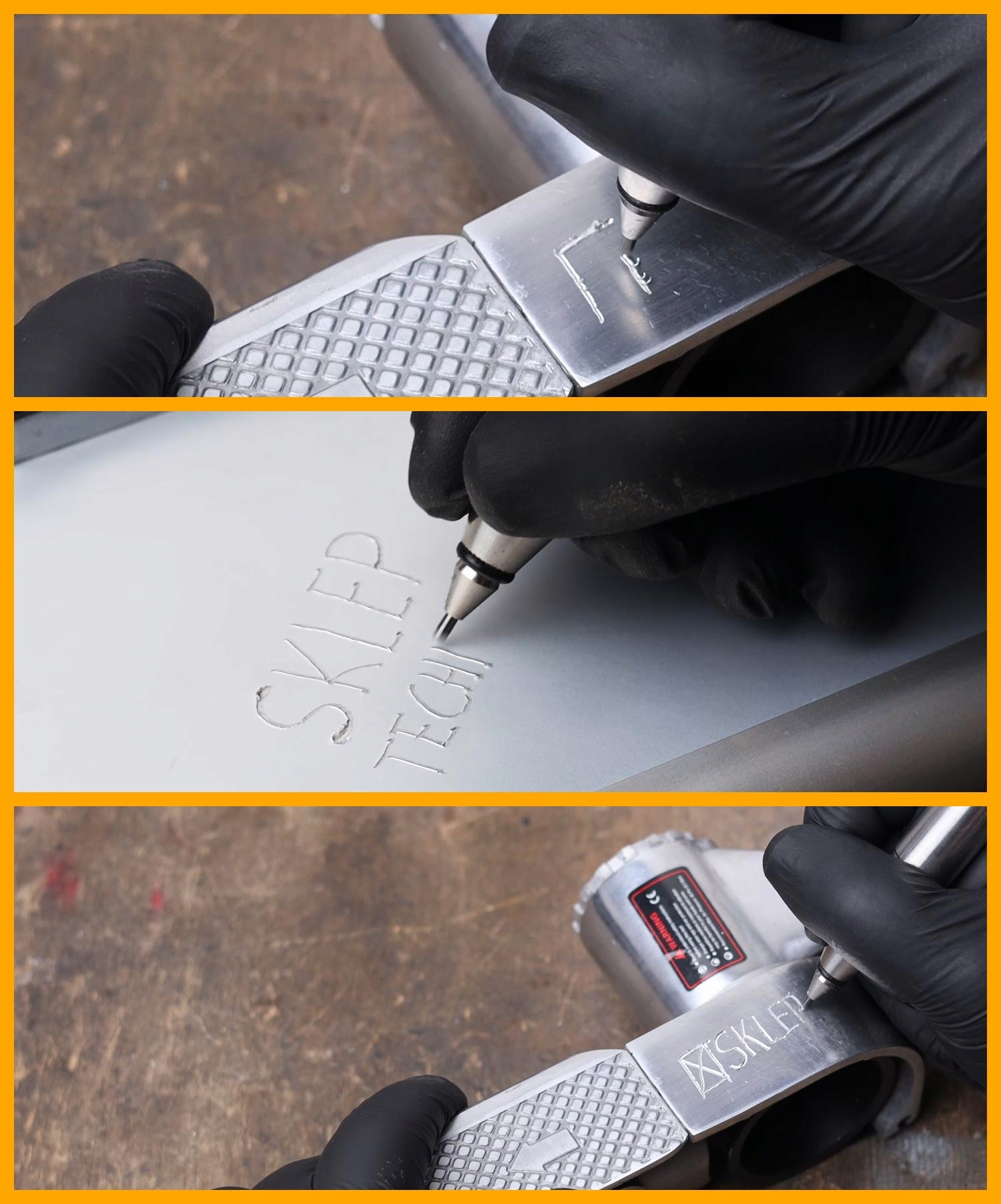 zur Beschriftung von Metall, Blechen, Kunststoffen, Stein, Marmor und anderen Werkstoffen mit glatter und fester Oberfläche.