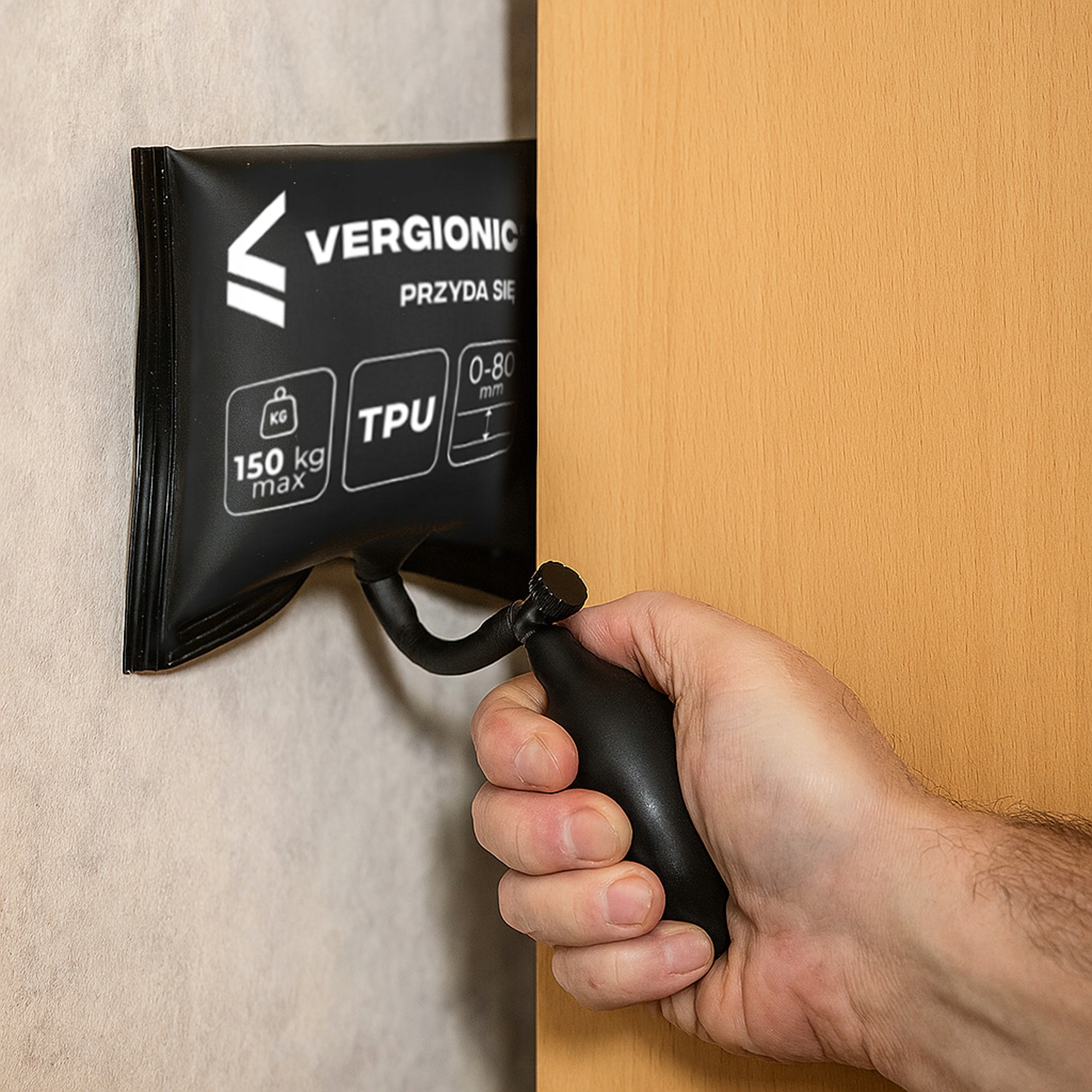 Пневматична монтажна подушка VERGIONIC — це універсальний інструмент із вантажопідйомністю до 150 кг, ідеально підходить для вирівнювання, підйому та стабілізації різних типів елементів — від дверей і вікон до кухонних меблів і побутової техніки. Управляється за допомогою зручного ручного насоса, що дозволяє точно регулювати висоту та положення встановленого елемента без будь-яких зусиль.