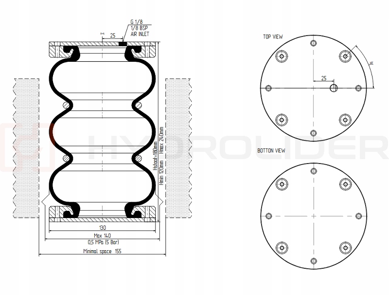 Пневматична подушка сильфона з фурнітурою 130/3 100x3