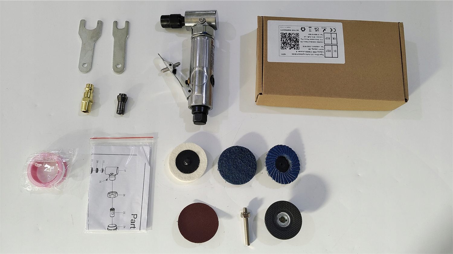 ПНЕВМАТИЧНА ШЛІФУВАЛЬНА МАШИНА 1/4'' КУТОВИЙ ХВОСТИК 50мм НАБІР