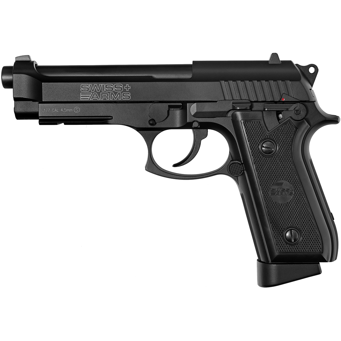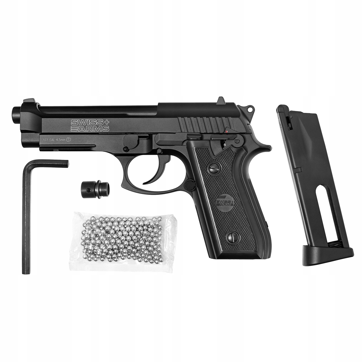 Виготовлена повністю з металу, важка копія Swiss Arms GSG 92. Пістолет стріляє кулями BB (4,5 мм). Приводом є 12-грамовий картридж з CO2, розміщений у магазині, який містить 21 кульку. Ударно-спусковий механізм працює, подібно до моделі бойових патронів, як у системах SA (одинарної дії), так і в системах DA (подвійної дії). Пістолет на корпусі має оригінальне маркування швейцарської компанії-виробника стрілецької зброї Swiss Arms.