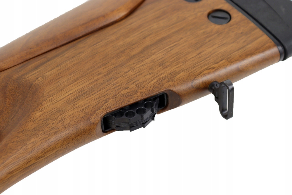 - Регульована накладка для щоки - дозволяє налаштувати зручне положення для зйомки під індивідуальну зйомку переваги стрільця.з відкритих прицілів і з оптичного прицілу. Висота затильника і отвір для зберігання запасного магазину також регулюються разом із прикладом.