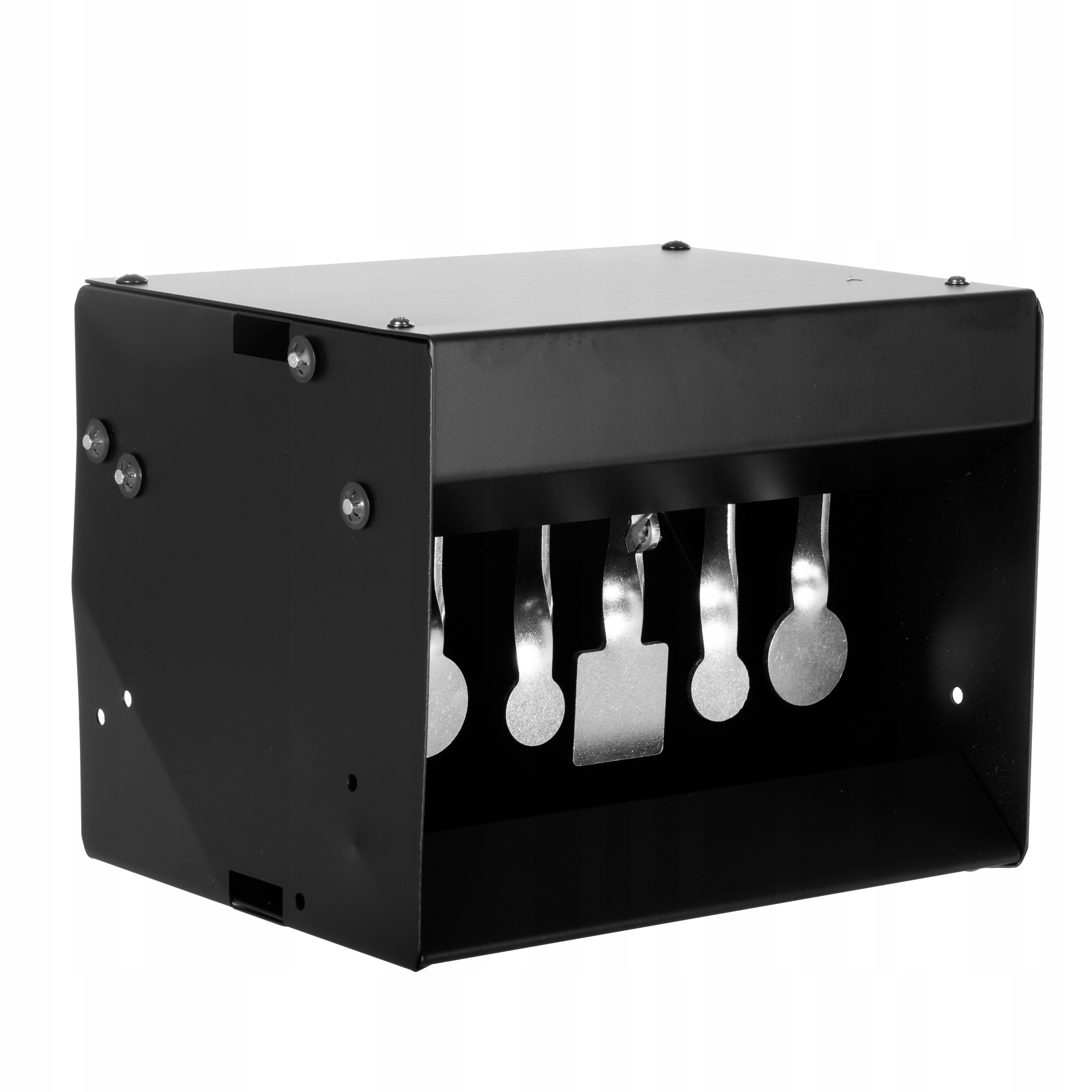 Кулеловка виготовлена з товстого сталевого листа, покритого чорною порошковою фарбою для захисту від корозії. Критичні стінки пулеуловителя мають косе розташування, що запобігає рикошету сталевих ББ і дозволяє ефективно утримувати залишки свинцевих дробів, завдяки чому вони зберігаються всередині сталевої коробки. Після стрільби просто вилийте залишки дробин із кулєловки та викиньте їх у призначене місце, подбавши таким чином про наше природне середовище.