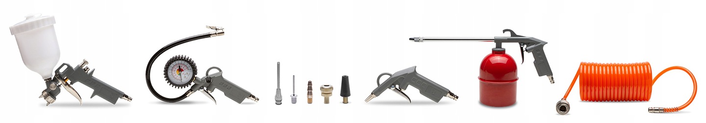 Набір аксесуарів TORPEDO складається з 10 елементів. Високоякісні пневматичні аксесуари, під’єднані до компресора, дозволяють використовувати широкий спектр застосувань, наприклад:
