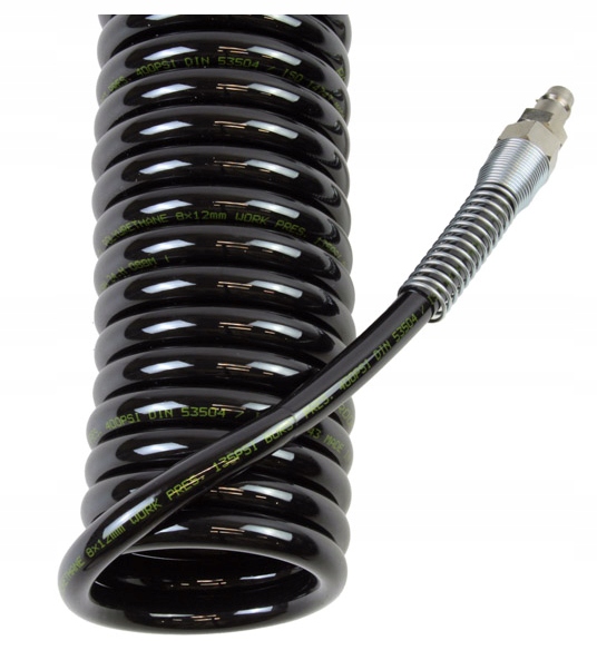 Пневматичний, спіральний кабель ПУ з з'єднувачами, 12x8, 10 м, 12 руків