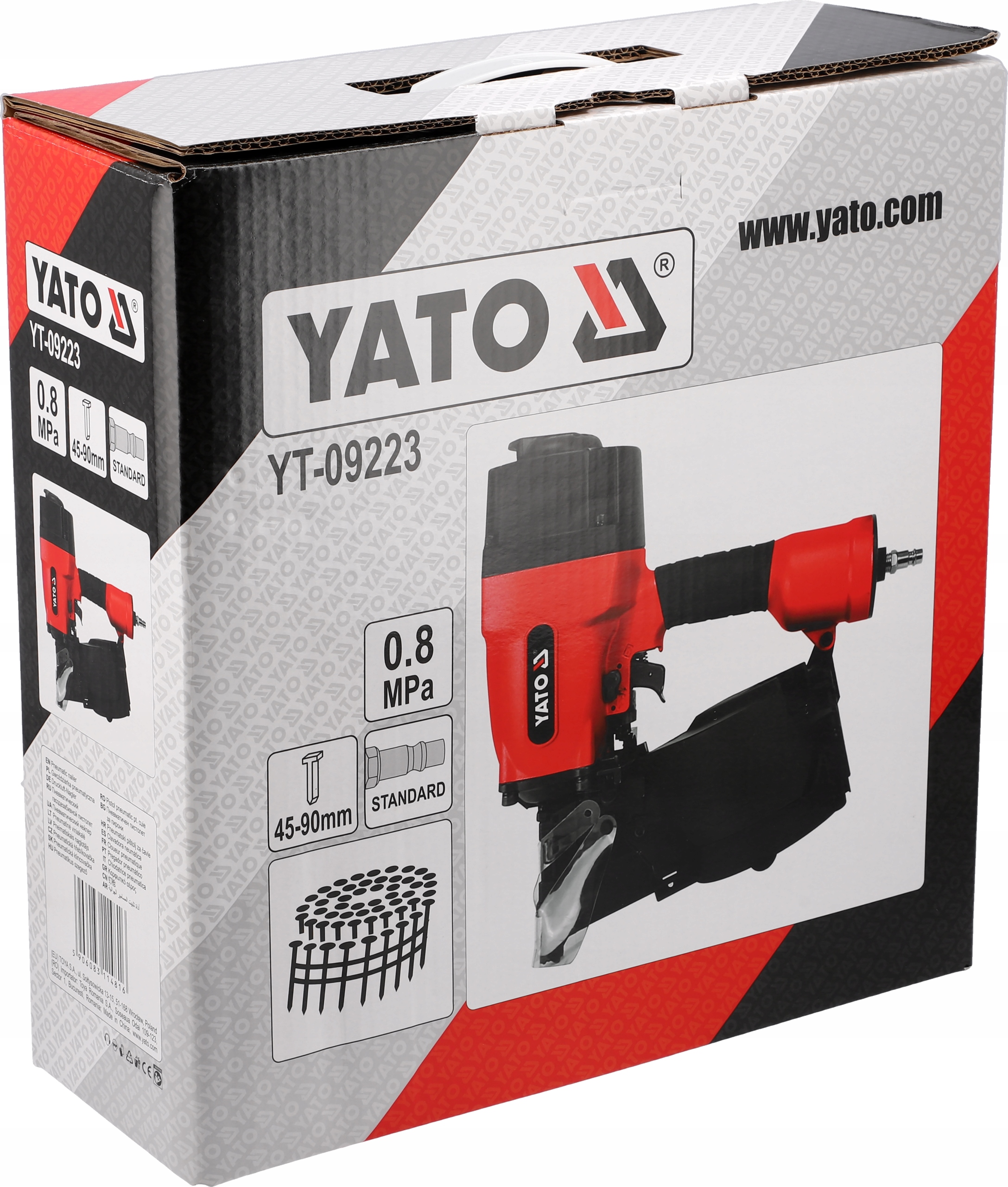 ПНЕВМАТИЧНИЙ БАРАБАННИЙ ЦВЕЗЯБІВАЛЬНИК YATO ДЛЯ СТОЛЯРСКИХ ЦВЯХІВ 45-90ММ