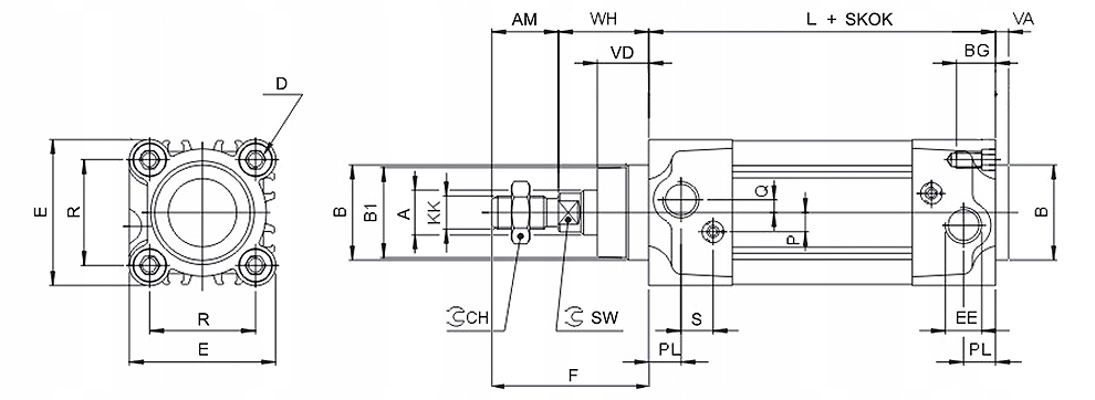 ПНЕВМАТИЧНИЙ ЦИЛІНДР ISO 6431/15552 - D 32 x 300
