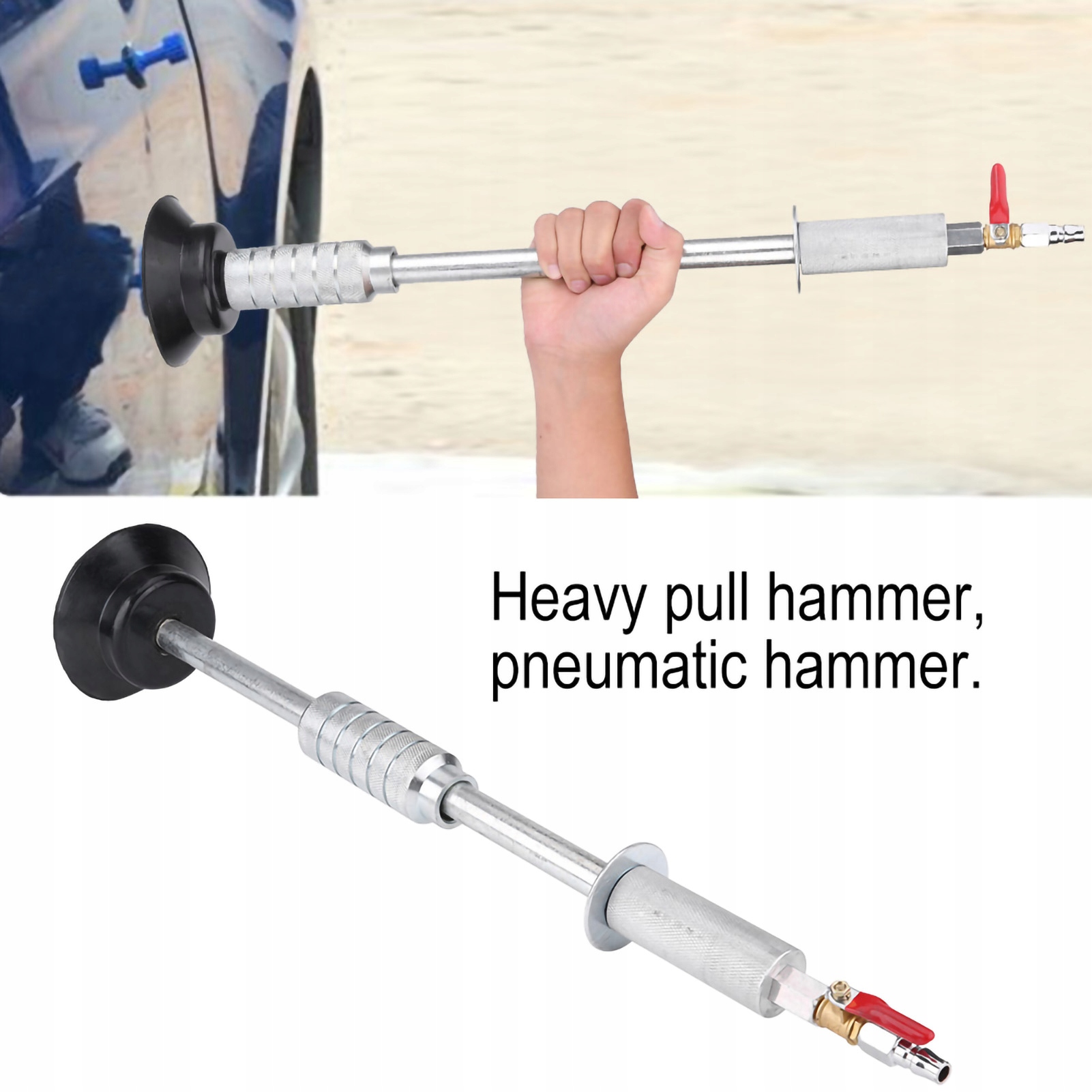 Це важкий пневматичний зарядний молоток для ремонту великих вм'ятин у машині. Ця пневматична стоматологічна вівця - це незамінний інструмент для видалення вм'ятин у транспортних засобах. Автомобільні вм'ятини можна легко видалити, поклавши на панель присольну чашку на вм'ятину та за допомогою вбудованого ковзаючого молотка. Наш пневматичний стоматолог тривав протягом багатьох років використання.