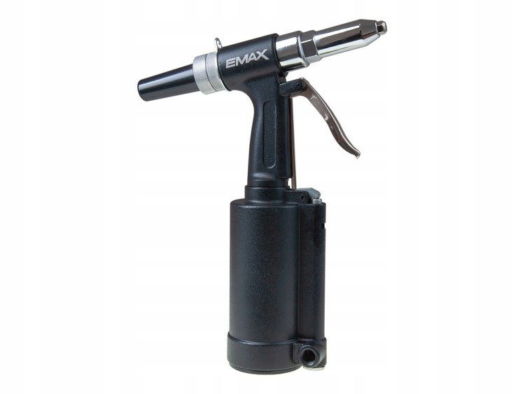 Предметом пропозиції є пневматичний заклепувальник американської марки EMAX, призначений для з'єднання різних типів елементів за допомогою сталевих заклепок. вся конструкція пристрою виконана з використанням міцних матеріалів, що значно подовжує термін служби пристрою. Пневматичний клепальник забезпечує більш ефективну та комфортну роботу, ніж ручний клепальник. У пристрої використовується гідравлічно-повітряна функція для збільшення потужності клепальника.