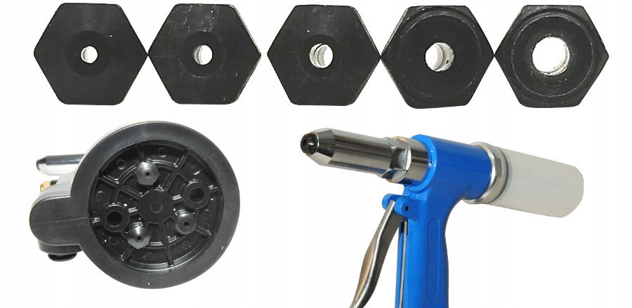 Завдяки різноманітним типам губок заклепальщик може працювати з заклепками наступних розмірів: 2,4; 3.2; 4; 4,8; 6,4 ммі заклепки з нержавіючої сталі, сталі, міді та алюмінію.