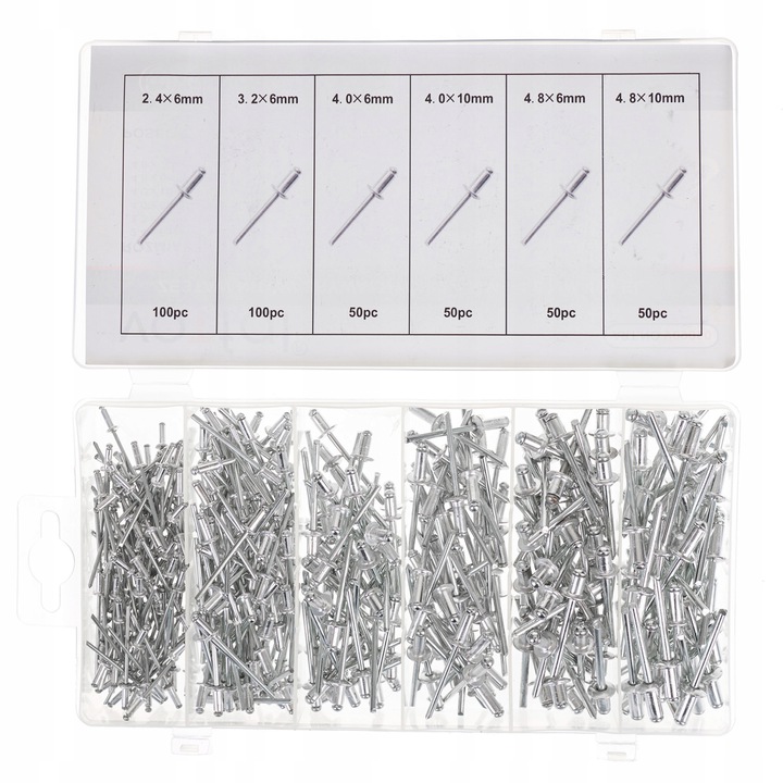 ПНЕВМАТИЧНИЙ КЛЕПАЛЬНИК ДЛЯ ЗАКЛЕПОК 2,4 - 6,4 мм 1050 кг ЩЕЛЕПИ НАКОНЕЧНИК З'ЄДНАННЯ + ЗАКЛЕПКИ ГЛУХІ НАБІР ЗАКЛЕПОК ЗІ СТАЛЕВИМ ПУЙСОНОМ 400 ШТ. ОРГАНІЗАТОР