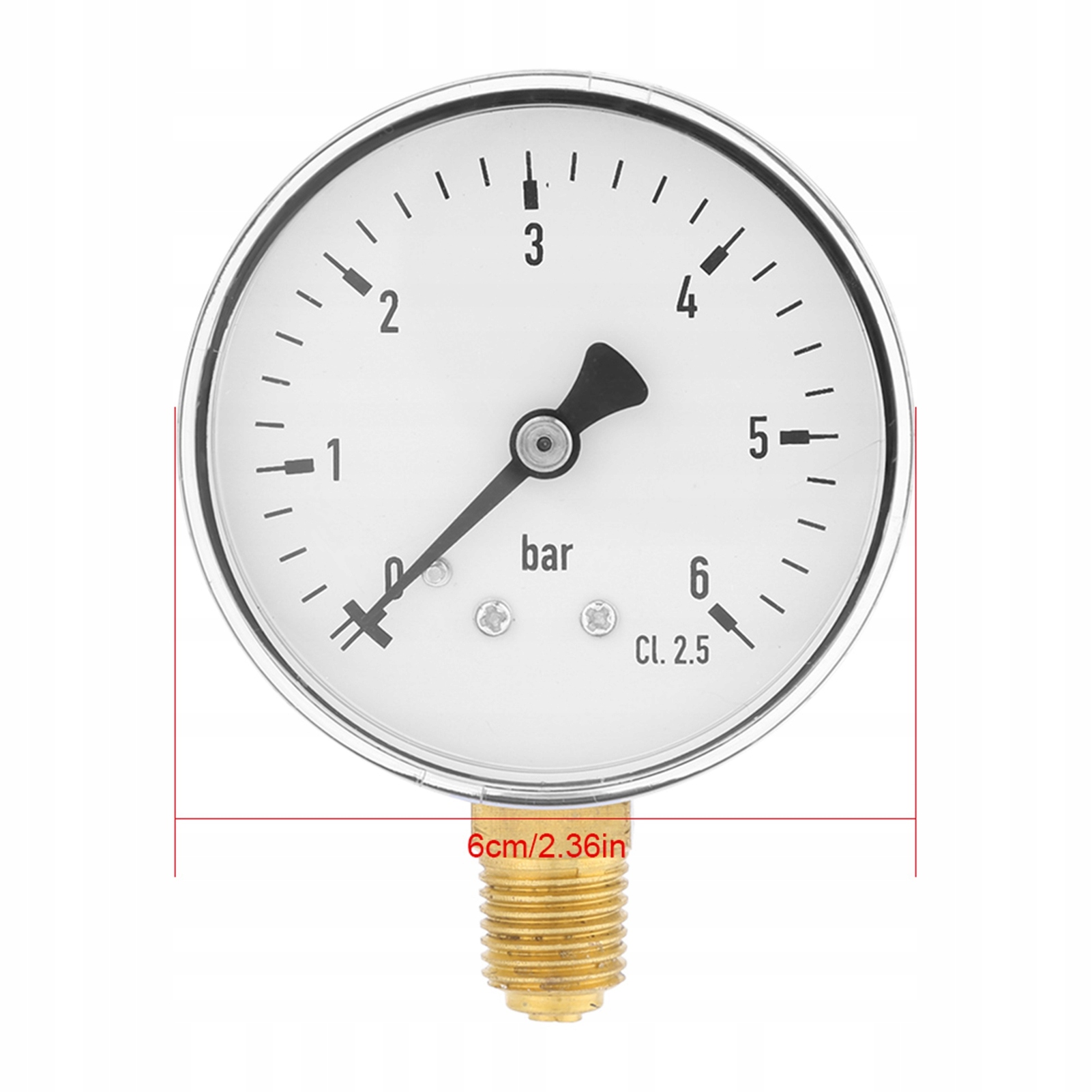 - Цей манометр має циферблат діаметром 6 см і шкалу. Завдяки різьбовому з’єднанню 1/4" NPT, встановленому збоку, діапазон вимірювання становить 0~6 бар. Чіткі цифри полегшують читання.