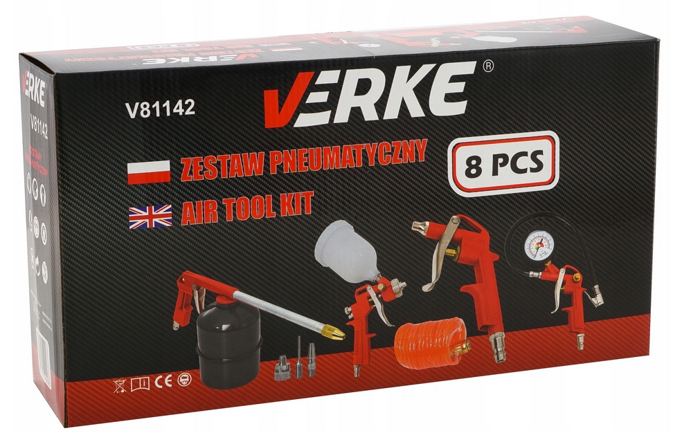 ПРОФЕСІЙНИЙ ПНЕВМАТИЧНИЙ НАБІР ДЛЯ КОМПРЕСОРІВ, 8 ЕЛЕМЕНТІВ VERKE