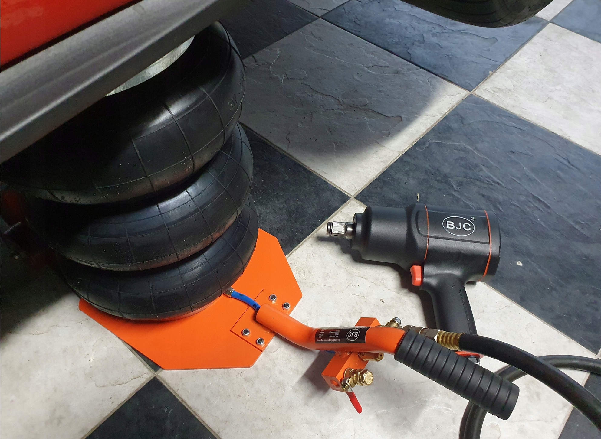 Повітряний домкрат чудово підходить для підйому важких предметів в автосервісах, на домашніх складах
