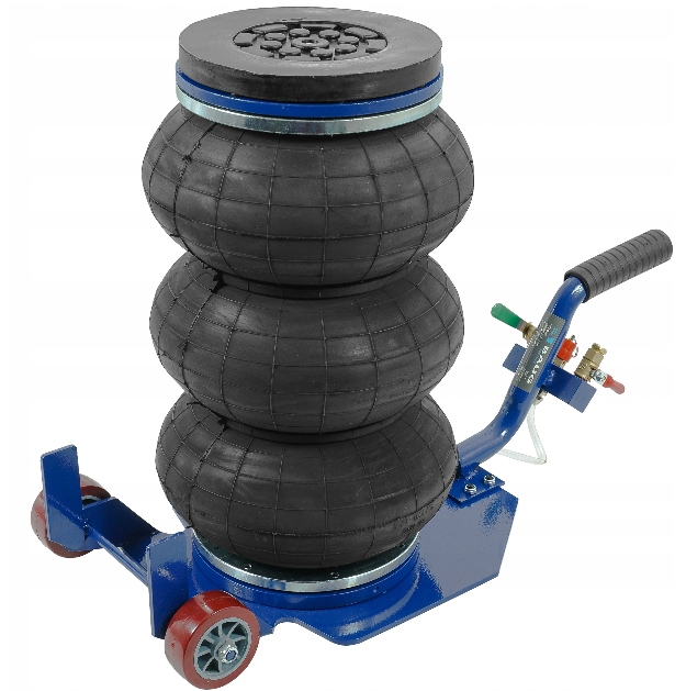 Пневматичний подушкопідйомник- це професійне обладнання, яке з успіхом може використовуватися, в тому числі: на шиномонтажних заводах, в автомайстернях і на фермах. Цей сніговик може максимально піднімати транспортні засоби вагою до 3,5 тонн. Гума забезпечує безпечний підйом і полегшує розміщення підйомника в потрібному місці, що значно прискорює та полегшує роботу. Підйомник працює на стисненому повітрі з робочим тиском від 5 до макс. 10 бар.