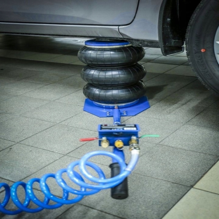 У комплект входить безкоштовне гумове кільце, яке захищає пороги та інші опорні елементи від подряпин і пошкоджень. Гумка забезпечує безпечний підйом і полегшує розміщення підйомника в потрібному місці, що значно прискорює і полегшує роботу. Ліфт працює на стисненому повітрі з робочим тиском від 5 до максимум 10 бар.