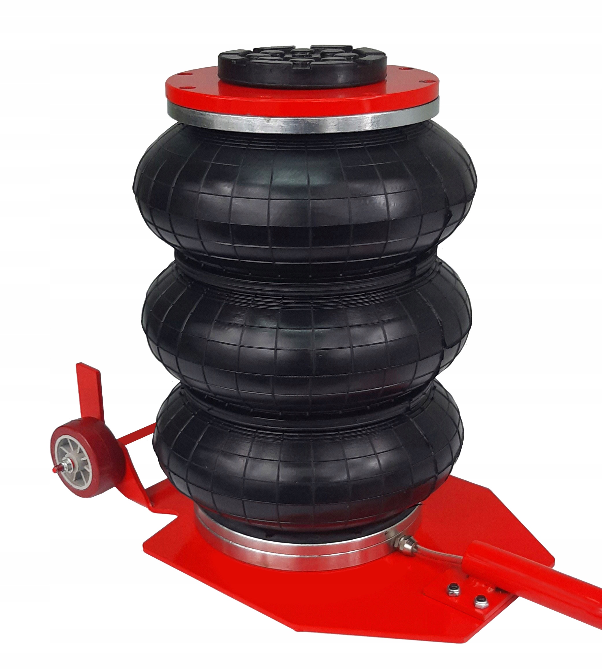 - червоний запобіжний клапан, що запобігає розриву подушки, якщо перевищено допустимий тиск стисненого повітря - вище 10 бар