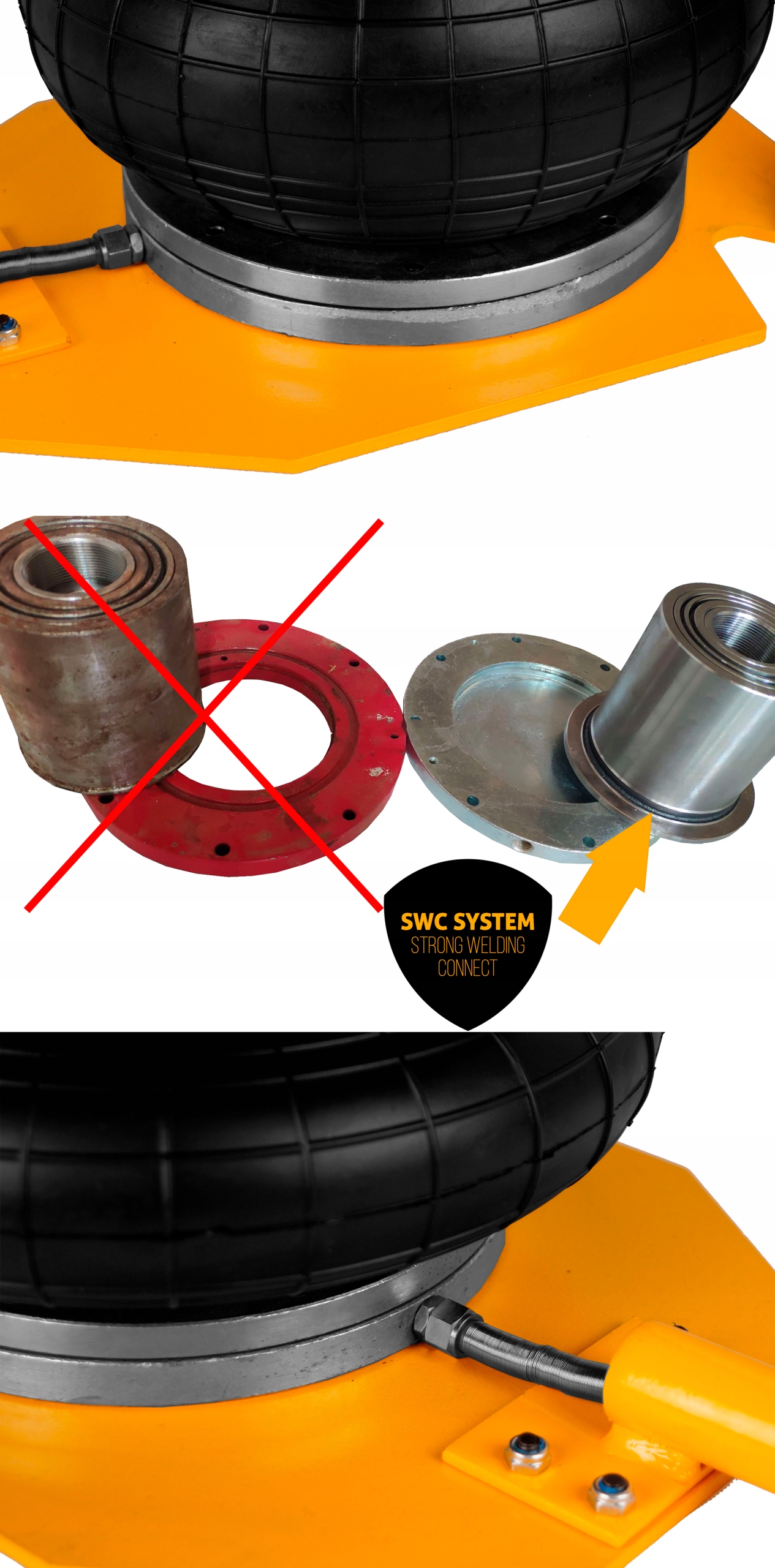 Усередині сильфона є поршні з високоякісної сталі, які стабілізують подушку та забезпечують безпеку під час використання пневматичного підйомника.