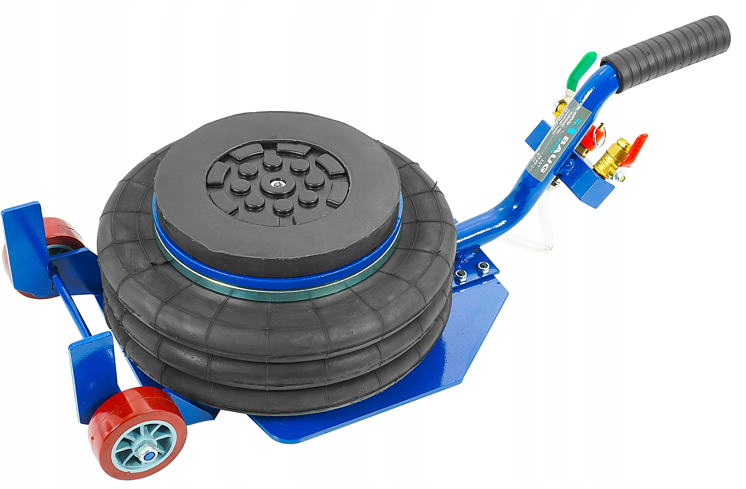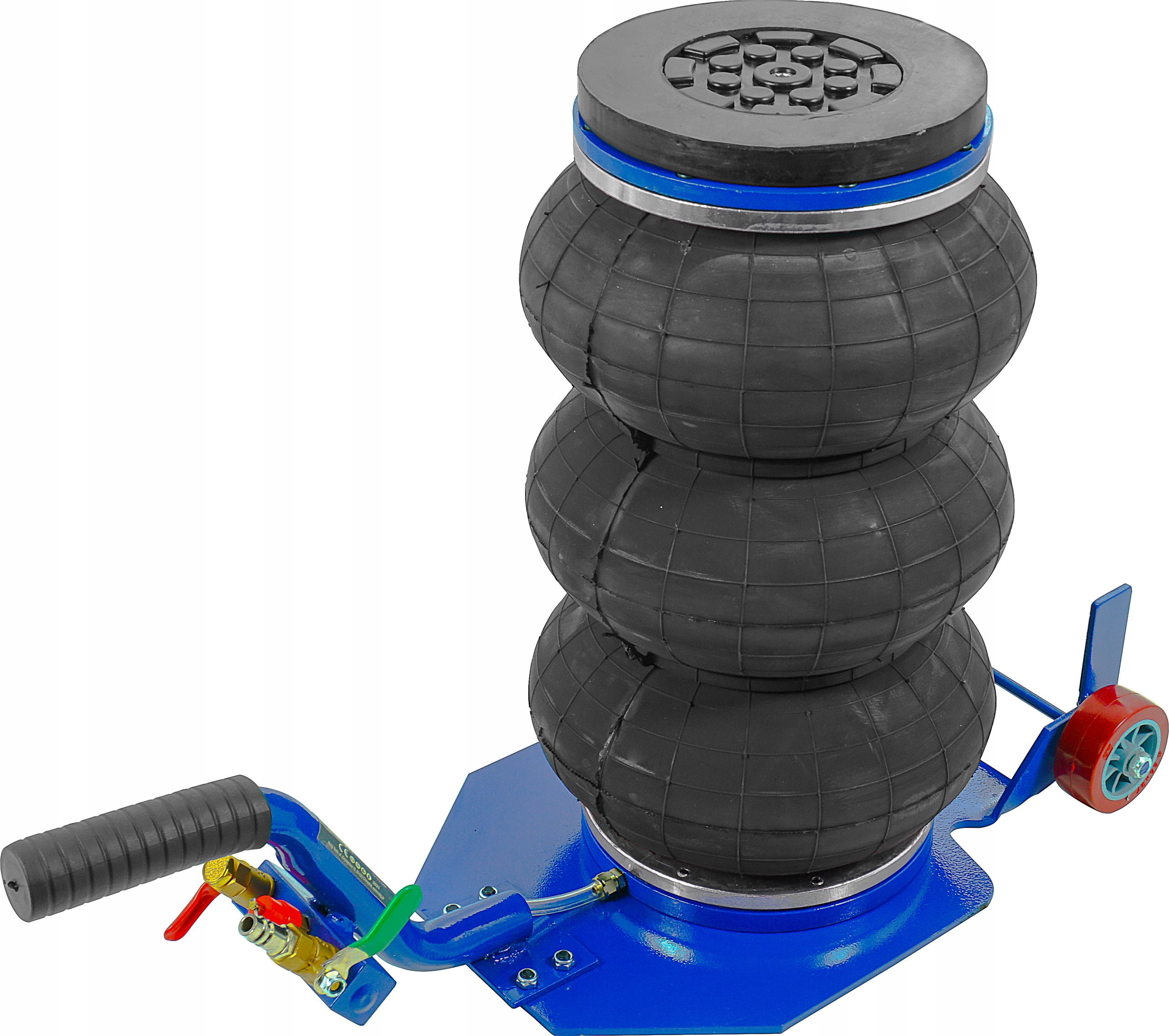 пневматичний пневматичний підйом - це професійне обладнання, яке можна успішно використовувати m. на вулканізаційних рослинах та автомобілях або на фермах. Цей сніговик якомога більше підніме транспортні засоби до 3,5 тонн. Всередині подушки використовували внутрішній телескоп високої якості забезпечення стабільності конструкції навіть під максимальним навантаженням. У наборі ми даємо безкоштовне гумове кільце, яке захищає пороги та інші елементи, що піднімають навантаження, проти подряпин або пошкодження. Гума дозволяє забезпечити безпечний підйом і полегшує розташування підйому в потрібному місці, що значно прискорює та полегшує роботу. Підйомник живиться при стисненому повітрі з робочим тиском від 5 до максимуму. 10 бар . Переваги