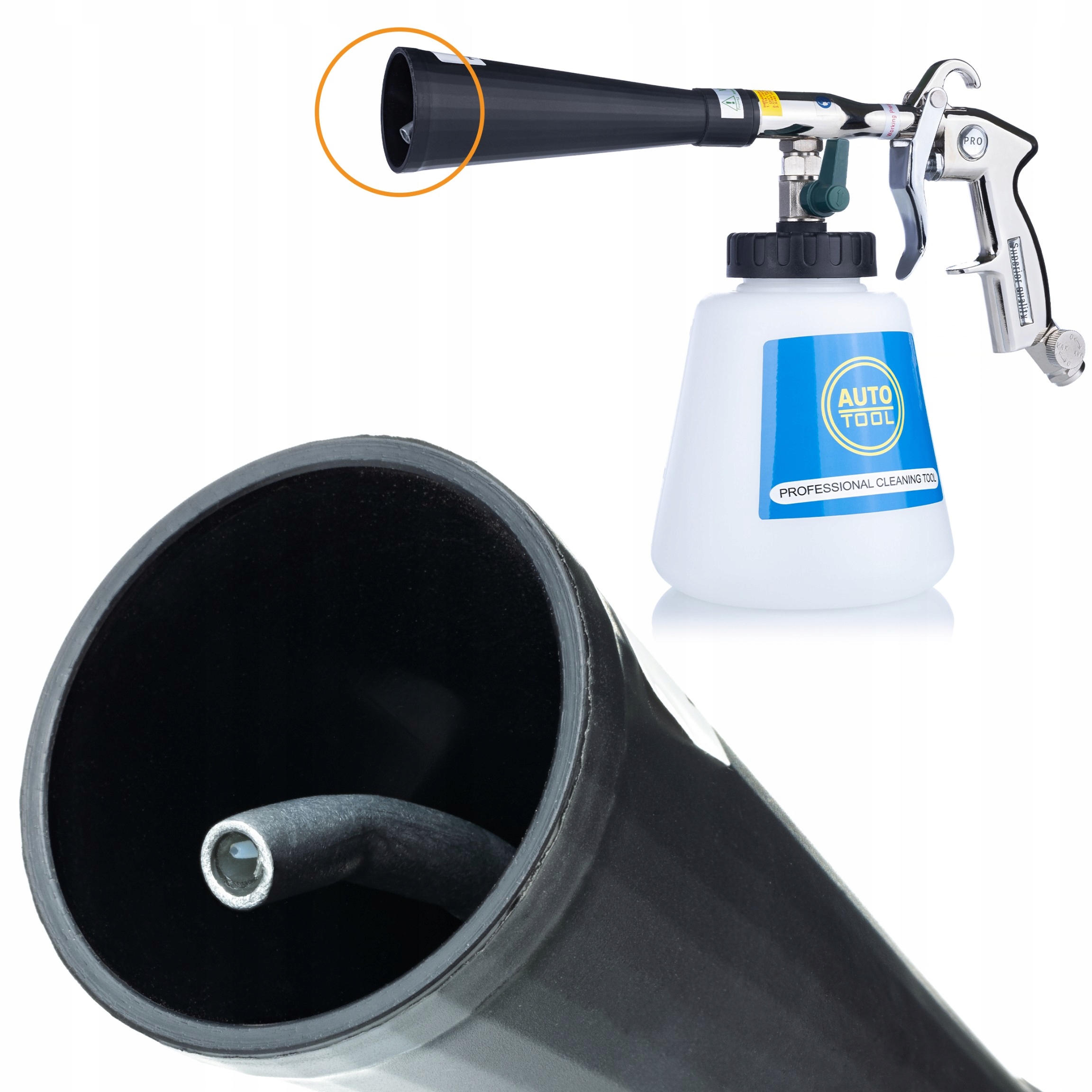 - Пистолет Tornado T02 II: Основний елемент набору, який використовується для ефективного очищення різних поверхонь.