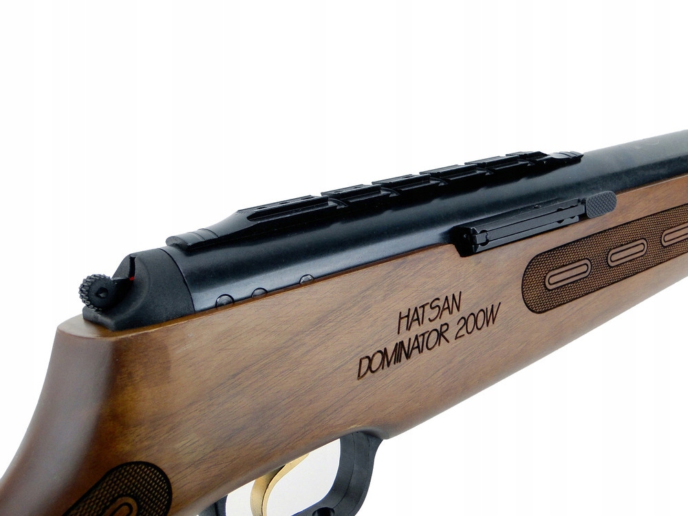 Пневматична рушниця Hatsan 200W Dominator — це модель із меншим натягом пружини, оснащена класичними оптоволоконними прицілами та автоматичним запобіжником спускового курка.