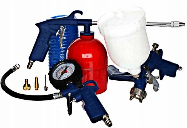 - Усі елементи набору характеризуються високою, ідеальною якістю. лак, лаки, акрилові фарби та водневі. Це чудово працює в живописі автомобіля. У ньому є корпус гумового годинника. Він оснащений повітряним клапаном. День пістолет буде корисним, коли видаляє домішки з погано доступних місць. У насосних кульках, понтонах, автомобільних колесах, іграшках, матрацах.
