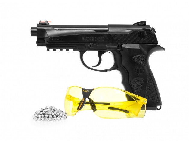 RazorGun Excite — це пневматична зброя CO2, створена за зразком італійського пістолета Beretta 90 TWO калібру 9 мм. Однак, на відміну від бойової версії, рамка і замок пневматичної зброї виготовлені з легкого полімерустійкого до механічних пошкоджень і погодних умов.