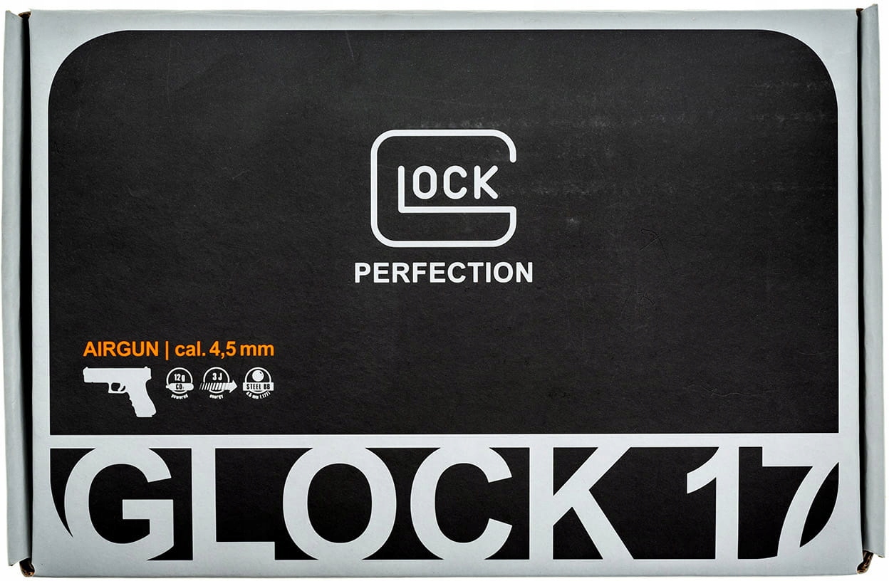 Ліцензійна пневматична рушниця найпопулярнішої зброї в світі - Glock 17. Пневматична рушниця виконана з металу і пластику - замок, ствол і внутрішні елементи виготовлені з металу. Ліцензійне маркування виробника Glock нанесено на пістолет і магазин.