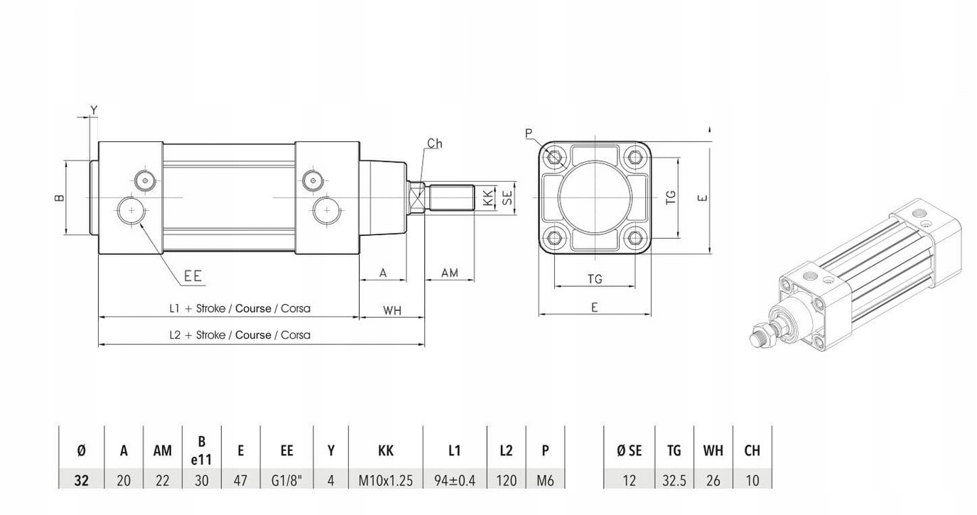 пневматичний циліндр подвійної серії 6431, виготовлених відповідно до ISO 15552/ISO 6431. мм