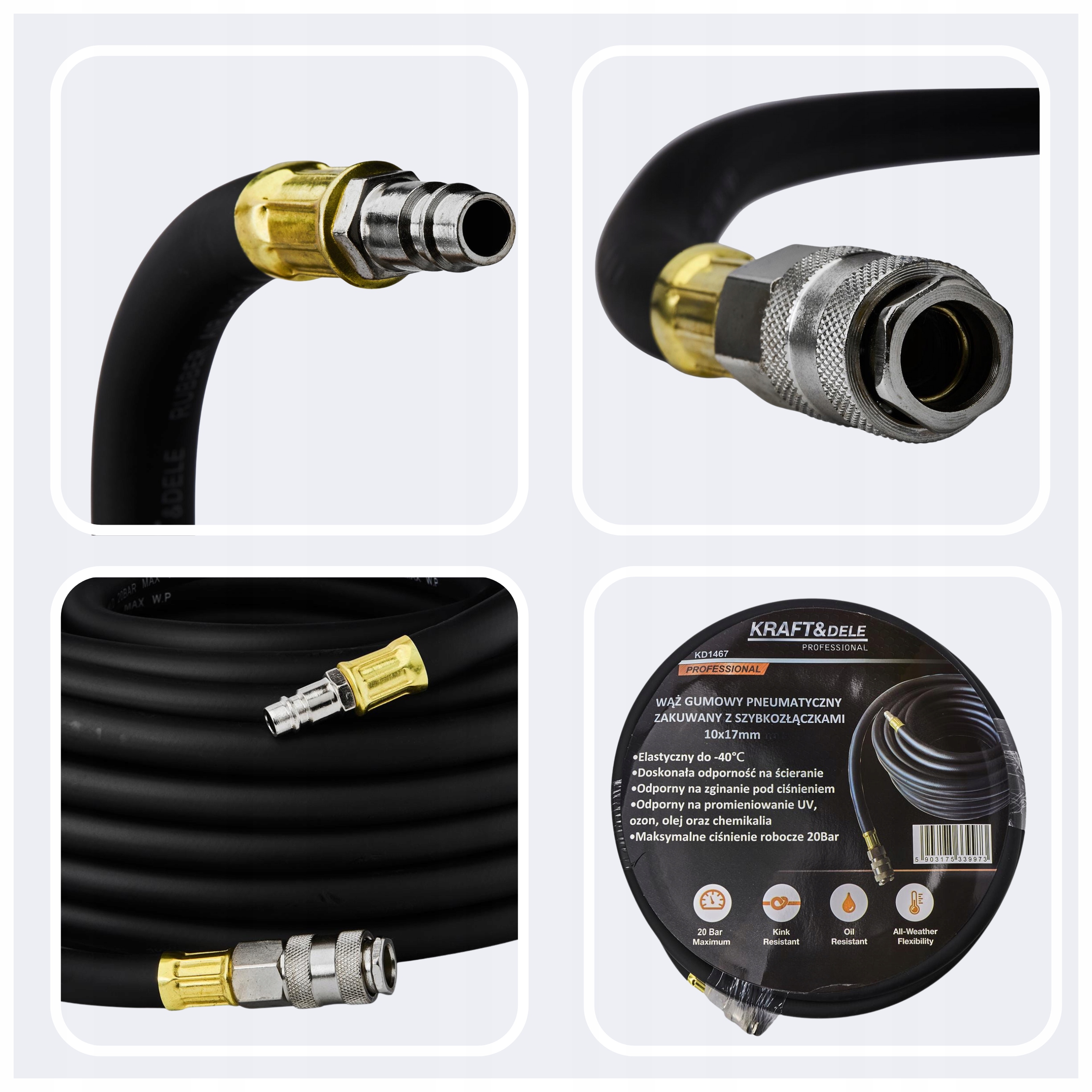 пневматичний шланг 15 м - практичне рішення для постачання пневматичних інструментів у майстерні, гаражі або на будівельному майданчику. Завдяки твердій створенні гнучкої гуми, продукт відрізняється стійкістю до механічного пошкодження та тривалого життя.