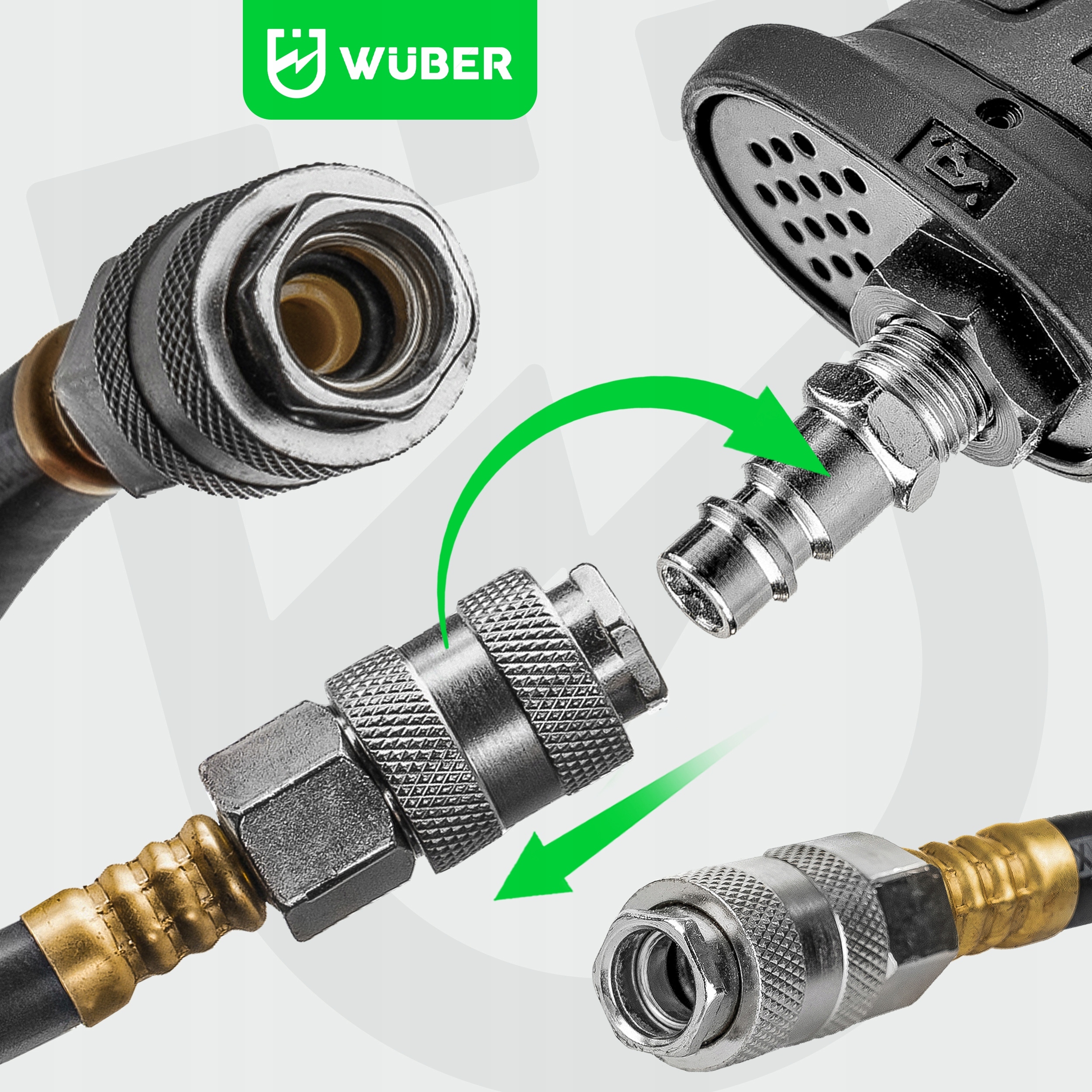 Цей міцний шланг є ідеально адаптованим для подачі різних пневматичних інструментів . Zapewnia niezawodne działnie przy pracy ze sprzętem wyposajony w standardowe szybkozącza , takim jak: