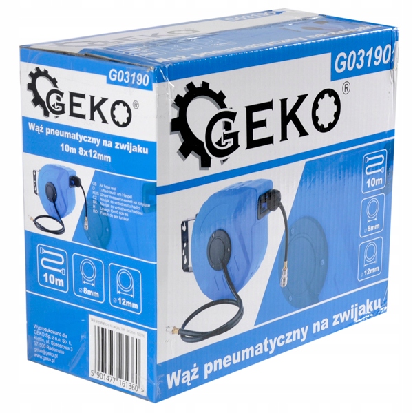 Пневматичний шланг зі швидкісними з’єднувачами на 10 м ПВХ ролику h1> Пневматичний кабель з з’єднувачами на роликовому барабані h1> Пневматичний шланг армований 10 м на скрабі 8x12 мм
