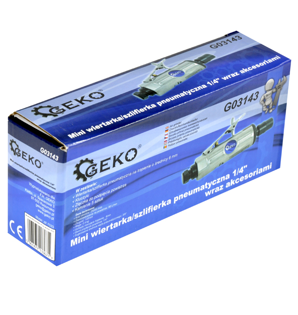 Мініпневматична шпиндельна шліфувальна машина від відомого бренду GEKO з пневматичним підключенням 1/4 дюйма. Шліфувальна машина постачається з набором шліфувальних аксесуарів і двома гільзами 6 і 3 мм. Ідеально підходить для роботи в тісних і важкодоступних місцях .
