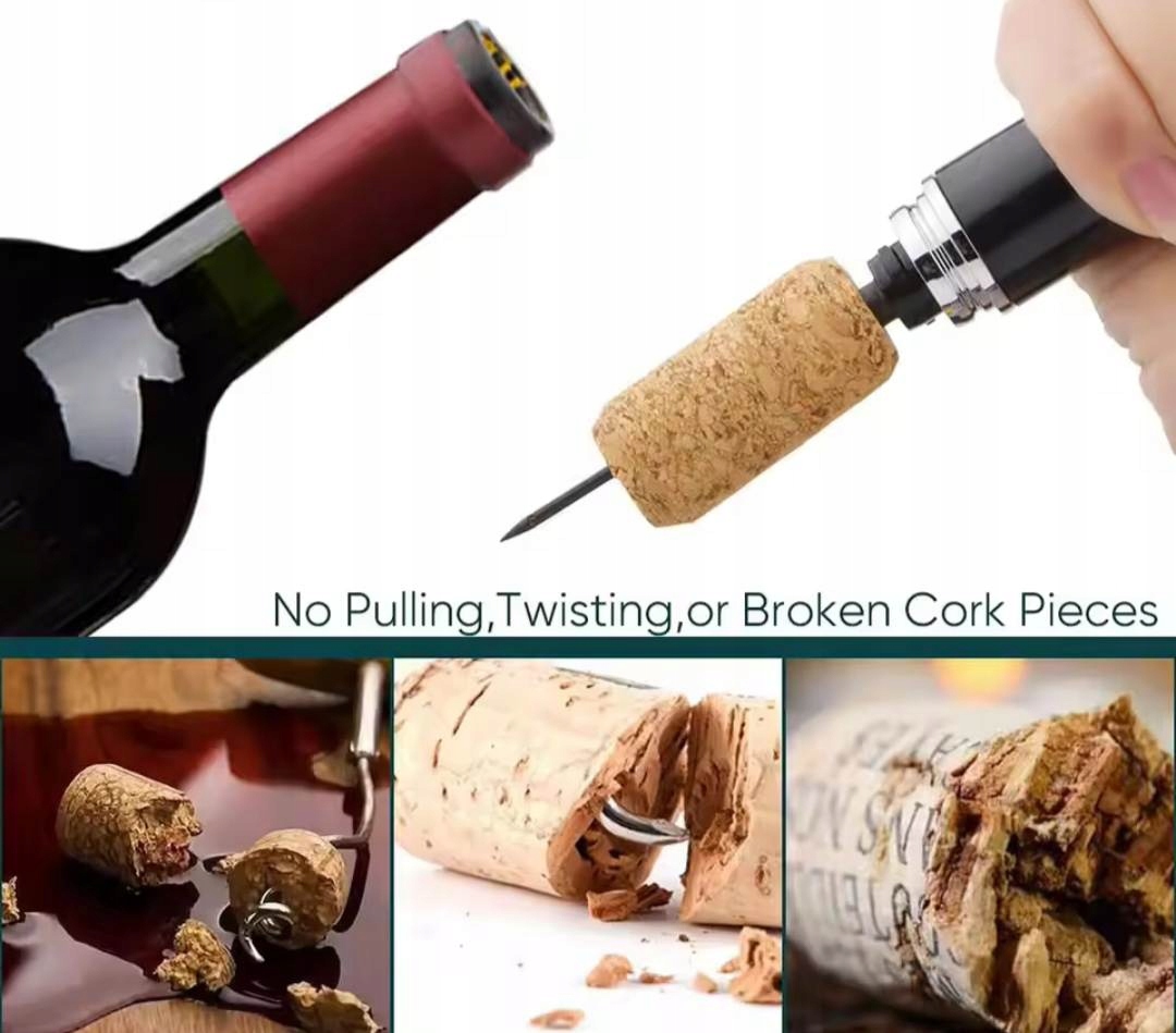 Ми пропонуємо сучасний пневматичний штопор, який є ідеальним рішенням для любителів вина. Завдяки використовуваній технології, відкрити пляшки - це швидке, зручне та без зусиль. Набір також включає різак для фольги, що робить продукт повним та надзвичайно практичним.