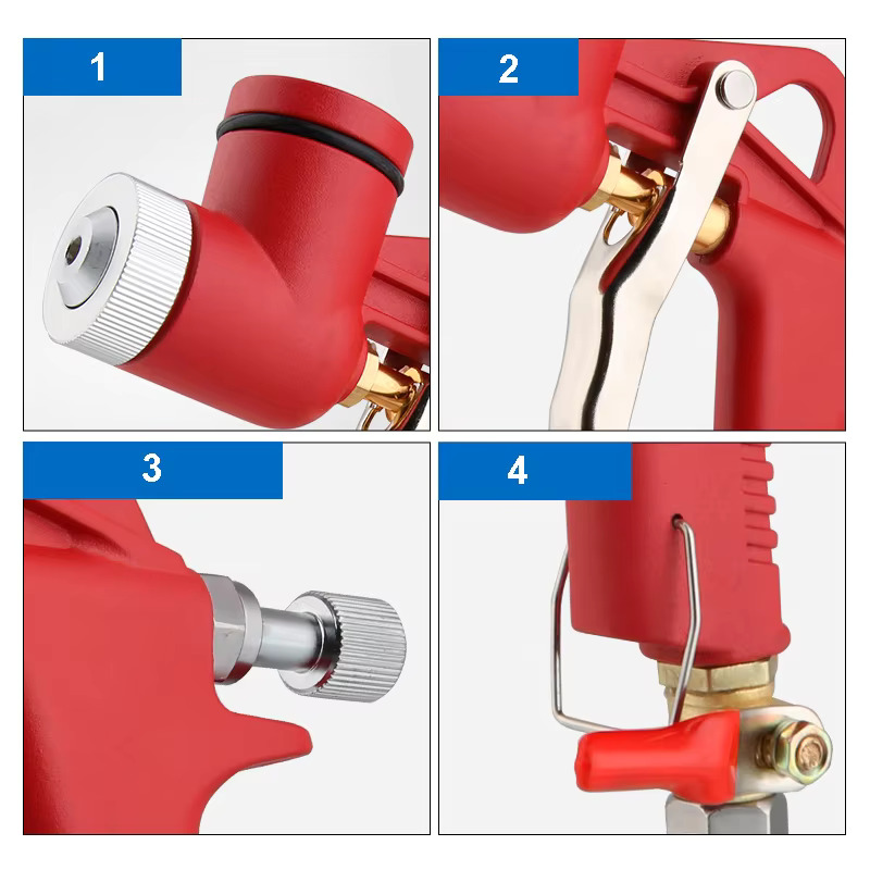 ► Завдяки змінним насадкам (4, 6, 8 мм) користувач може відрегулювати розмір струменя під тип матеріалу, отримуючи ідеальне покриття поверхні.