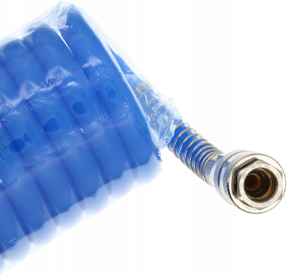 Поліетиленовий пневматичний шланг, що самонамотується, завдяки своїй спіральній структурі. М'яке поліуретанове покриття зменшує ймовірність подряпин на поверхні. На кінцях є швидкий роз'єм EURO (жіночий і чоловічий), який закріплюється пружинами. Можна використовувати з усіма пневматичними пристроями, зокрема: у майстернях, гаражах, станціях технічного обслуговування.