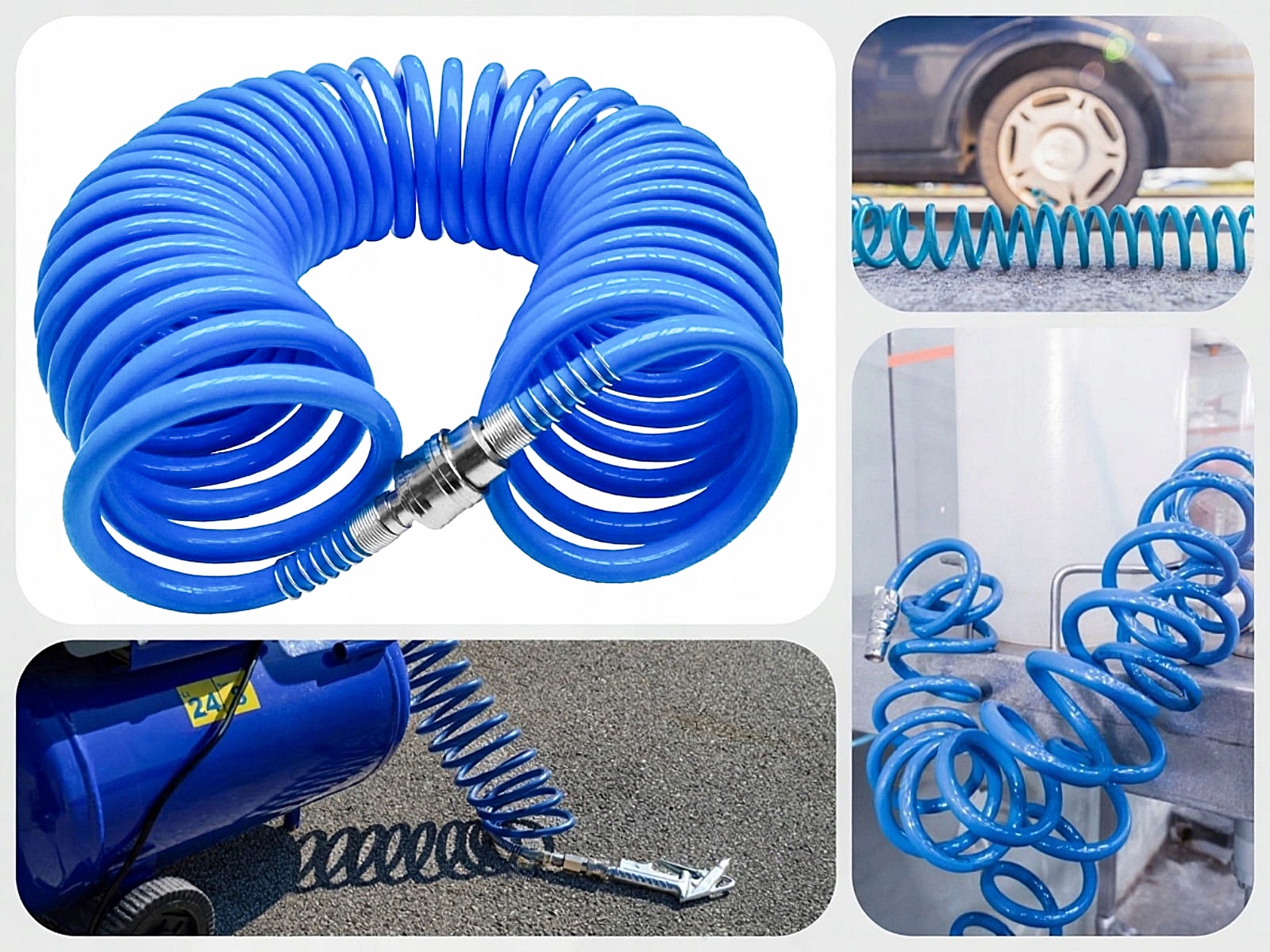 Спіральний шланг - це продукт, призначений для постачання пневматичних ланцюгів, розташованих в інструментах та інших системах. Продукт відрізняється високою гнучкістю, завдяки якому він адаптує його довжину до потреб користувача. Форма спіралі мінімізує ризик заплутування, тому вона характеризується високою легкістю використання та його зберіганням.