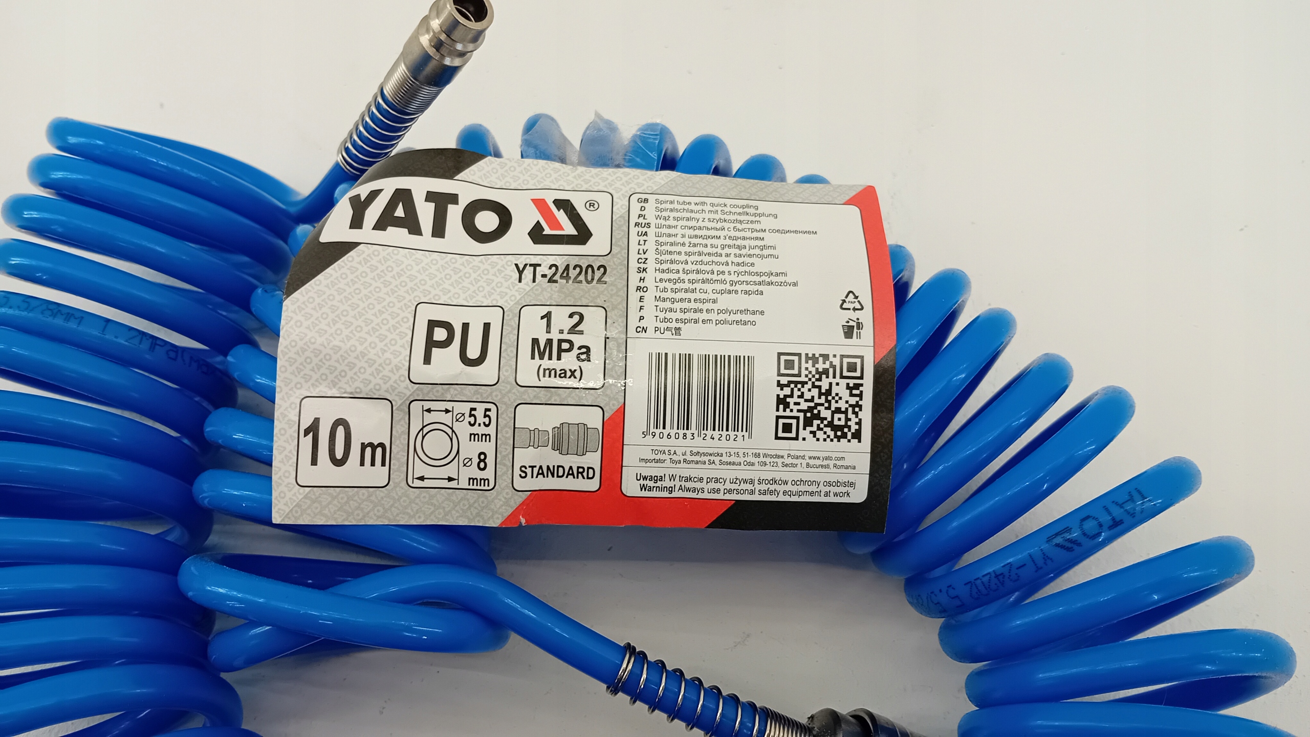 СПІРАЛЬНИЙ ШЛАНГ 5,5 ММ X 8 ММ X 10 М ПУ З ШВИДКИМИ З’ЄДНАННЯМИ YATO YT-24202