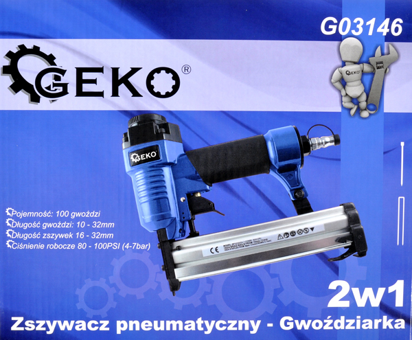 Пневматичний степлер / гвоздезабивач 2 в 1 фірми GEKO призначений для різних видів оббивних і столярних робіт.