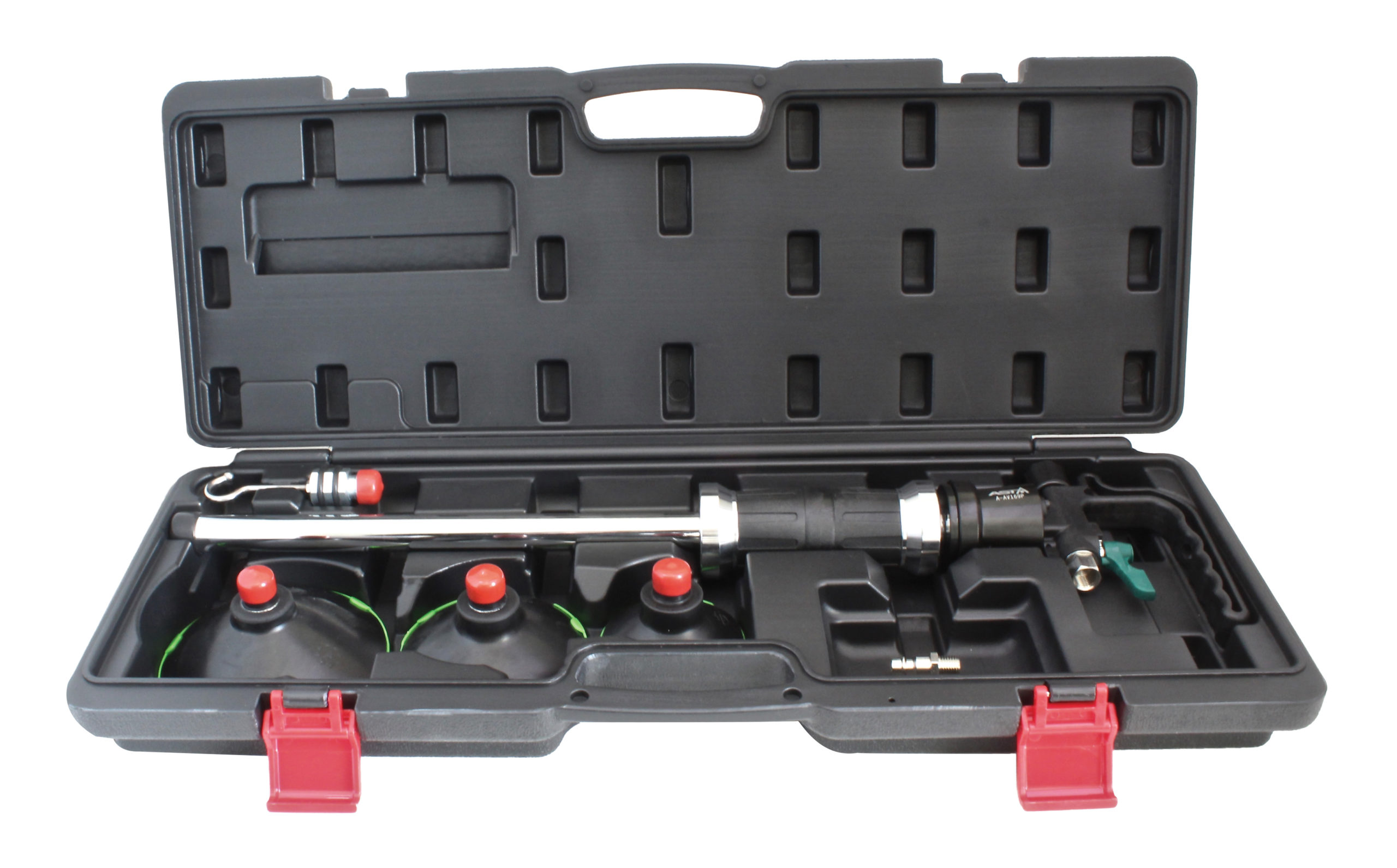 Поєднання інерційного молотка з вакуумом, створюваним інструментом, дозволяє присосці зі значною силою присмоктуватися до поверхні, що зміцнює та стабілізує контакт між кузовом і всмоктуванням. чашка.