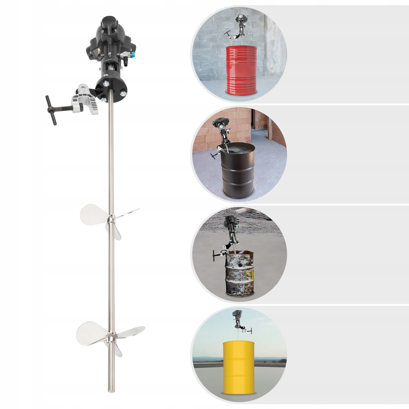 - Рівномірне змішування: повітряний змішувач, що кріпиться, дає вам гнучкі кути змішування та робоче колесо висоти, що забезпечує гарні результати змішування. Оснащений ефектом самоохолодження та напрямним клапаном, він може запускатися, зупинятися та обертатися в будь-який час.