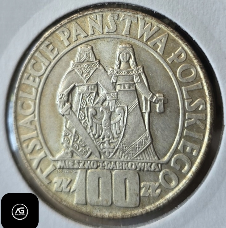 ПНР, 100 злотих 1966 МВт "Мешко і Домбрівка". Срібло